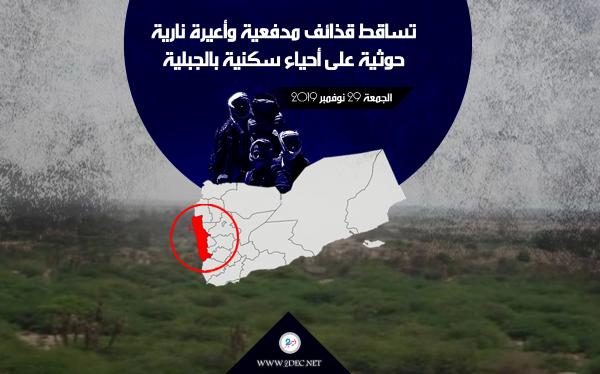 استهدفت مليشيا الحوثي الإرهابية تجمعات سكنية، صباح اليوم الجمعة، في منطقة الجبلية التابعة لمديرية التحيتا بمحافظة الحديدة، غرب اليمن، مستخدمة القذائف المدفعية الثقيلة والأسلحة المختلفة.