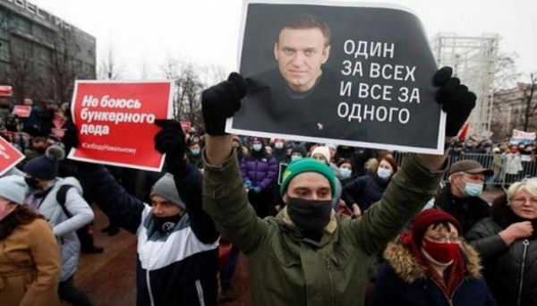 رفع آلاف المتظاهرين الروس الذين خرجوا، السبت، دعما للمعارض المعتقل أليكسي نافالني شعارات تطالب الرئيس الروسي، فلاديمير بوتين بالرحيل. وحاصرت قوات الأمن الروسية المتظاهرين وسط