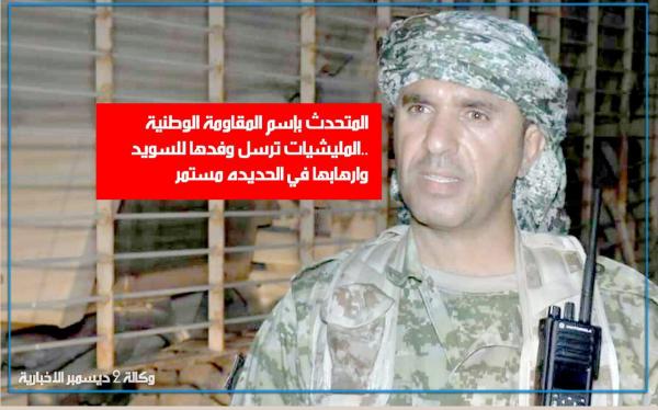 أكد المتحدث الرسمي باسم المقاومة الوطنية -حراس الجمهورية- العميد صادق دويد أن المليشيات الحوثية تواصل عملياتها الإرهابية في مدينة الحديدة وتحديدا الأحياء الواقعة تحت سيطرتها.