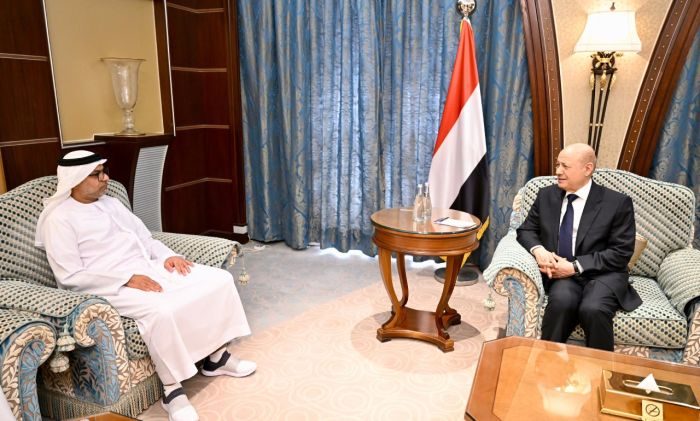 ثمّن رئيس مجلس القيادة الرئاسي الدكتور رشاد العليمي، الدور الفاعل لدولة الإمارات العربية المتحدة ضمن تحالف دعم الشرعية، بما في ذلك تدخلاتها الاقتصادية والإنسانية والإنمائية في