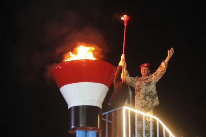 شهدت مدينة المخا، مساء اليوم، حفل إيقاد شعلة العيد الوطني الـ63 لثورة 26 سبتمبر و14 من أكتوبر، بحضور رسمي وشعبي كبير من الحديدة وتعز تقدمه النائب