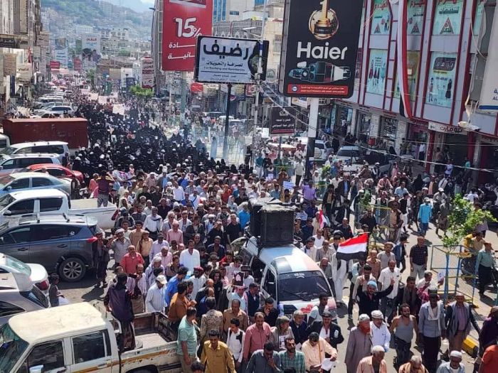 شهدت مدينة تعز، السبت، مسيرة ووقفة احتجاجية غاضبة؛ تنديدًا باغتيال مديرة صندوق النظافة والتحسين افتهان المشهري. وجابت المسيرة شوارع المدينة وصولًا إلى أمام مبنى السلطة المحلية