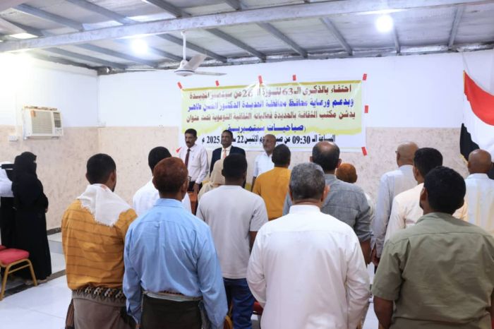 دشّن مكتب الثقافة بمحافظة الحديدة، صباح اليوم الاثنين، فعالياته الثقافية بمناسبة الذكرى الـ63 لثورة السادس والعشرين من سبتمبر المجيدة، تحت شعار "صباحيات سبتمبرية"، بحضور رسمي ومجتمعي