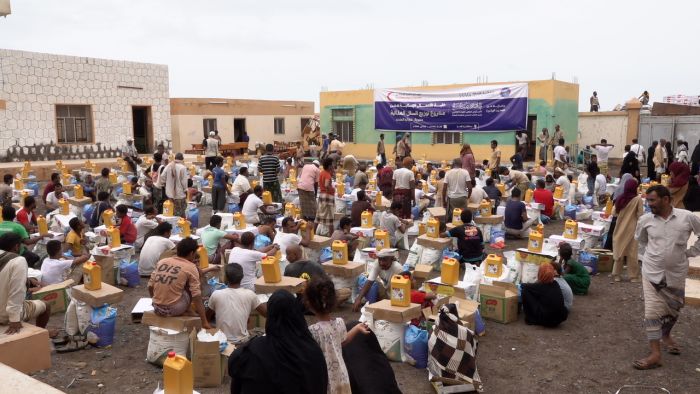 دشنت الخلية الإنسانية للمقاومة الوطنية، المرحلة الأولى من مشروع قافلة المساعدات الإنسانية بعدد 3000 سلة غذائية متنوعة لأهالي المناطق المحررة في مديرية حيس، تنفيذاً لتوجيهات قائد