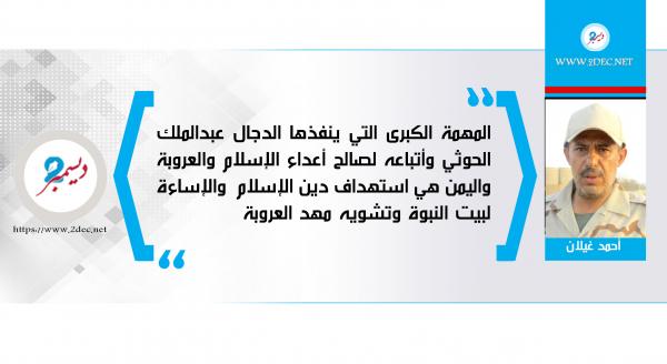 المهمة الكبرى التي ينفذها الدجال عبدالملك الحوثي وأتباعه لصالح أعداء الإسلام والعروبة واليمن هي استهداف دين الإسلام ، والإساءة لبيت النبوة ، وتشويه مهد العروبة بالجرائم