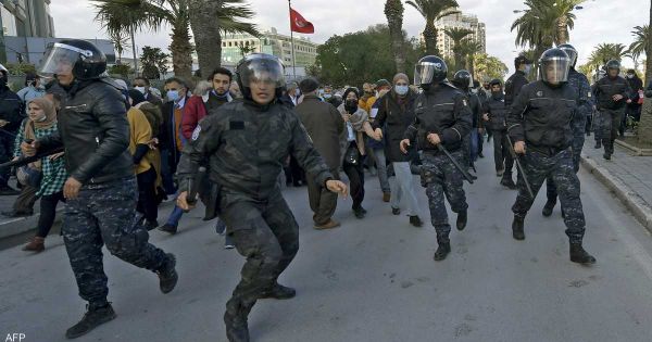 قالت وزارة الداخلية التونسية، الجمعة، إن المئات تعمدوا محاولة اقتحام الحواجز الأمنية وسط العاصمة، ومهاجمة قوات الأمن المتمركزة لحفظ النظام. وأوضحت الوزارة في بيان:"إثر تعمد مجموعات