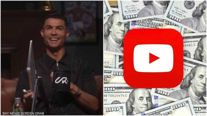يسير النجم البرتغالي كريستيانو رونالدو، بخطى ثابتة، لتحقيق دخل مالي ضخم، من قناته الجديدة على منصة يوتيوب. ووفقا لموقع "ذي سكورد"، تجاوز رونالدو حاجز 2 مليون