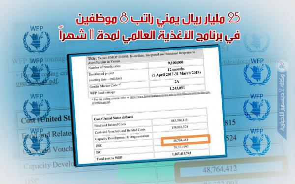 كشفت وثيقة من وثائق الأمم المتحدة عن تسلم 8 موظفين عاملين في إحدى منظماتها العاملة في اليمن نحو 50 مليون دولار راتبا لمدة أقل من عام
