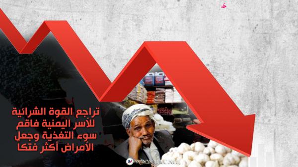 انخفض إنفاق اليمنيين على شراء الغذاء، واحتياجاتهم المنزلية، بشكل حاد، إذ ألحقت الحرب التي أشعلتها ميليشيا الحوثي وممارساتها العدائية أضراراً واسعة على مداخيل السكان والاقتصاد.
