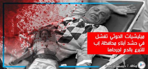 فشلت ميليشيات الحوثي الكهنوتية المدعومة من إيران في حشد أبناء محافظة إب للتبرع بالدم لجرحى المليشيا الواصلين من مختلف جبهات القتال في البلاد خصوصًا جبهة الساحل