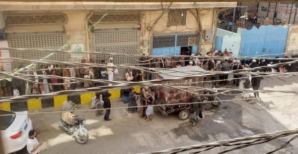 أظهرت صورةٌ التقطت بالعاصمة صنعاء الخاضعة لسيطرة مليشيا الحوثي المدعومة من إيران، العشرات، رجالاً ونساءً، يصطفون أمام مطعمٍ يقدم وجبات مجانية (أكياساً من الأرز) للعوائل الفقيرة.