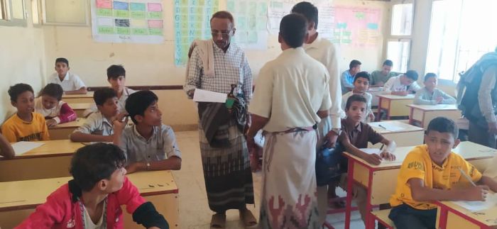 دشن مدير عام مديرية موزع الشيخ عبدالكريم حيدر، ومعه القائم بأعمال مدير مكتب التربية والتعليم في المديرية محمد القاسمي، اليوم الأحد، امتحانات نهاية الفصل الأول للعام