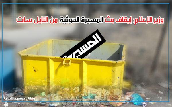 أعلن وزير الإعلام اليمني معمر الإرياني اليوم إيقاف بث قناة المسيرة التابعة للمليشيا الحوثية على مدار النايل سات متطلعاً إلى إيقاف القنوات الحكومية التي تسيطر عليها