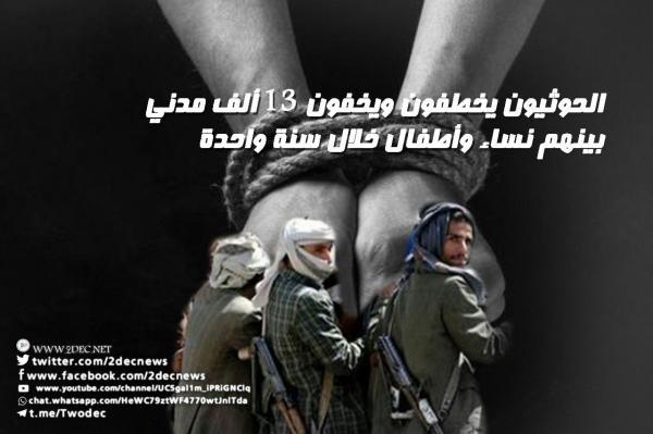 أعلنت منظمة حقوقية يمنية، اليوم الإثنين، عن رصدها نحو 13 ألف حالة اختطاف وإخفاء قسري ارتكبتها المليشيا الحوثية الموالية لإيران، العام المنصرم، ما معدله قرابة ألف