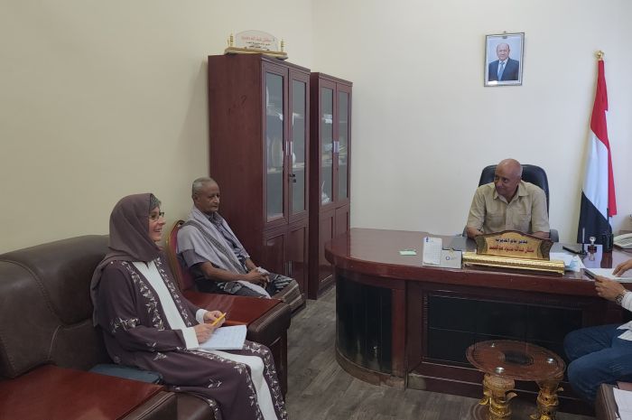 بحث مدير عام المخا بمحافظة تعز، الشيخ سلطان عبدالله محمود، اليوم الاثنين، مع وفد منظمة الأمم المتحدة للطفولة (اليونيسف) برئاسة المختصة بالمياه الجوفية السيدة إيفلين أرنولد،
